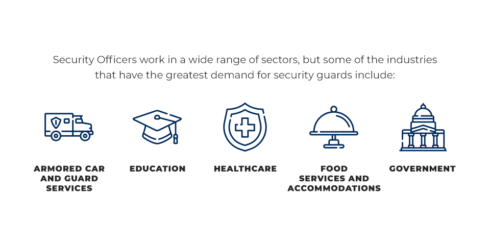 Security Officers work in a wide range of sectors, but some of the industries that have the greatest demand for security guards include:
