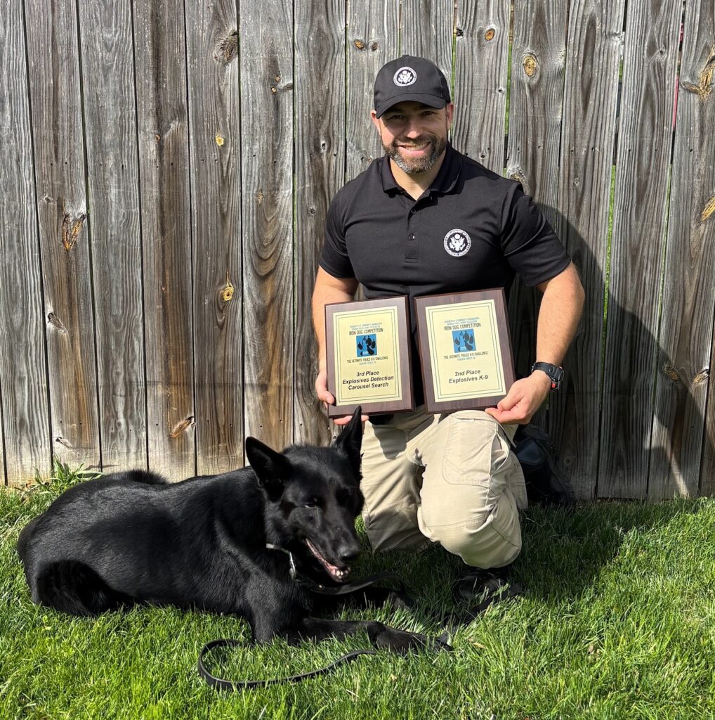 During the event, which featured a 1.5-mile course with seven skill-testing stations, McIntosh and Argo made an impressive debut, securing 3rd place in the Explosive Detection Carousel Search and 2nd place in the Overall Explosive K-9 category. The competition’s demanding format required teams to demonstrate precision and agility, with penalties for any incorrect finds or failure to complete obstacles.